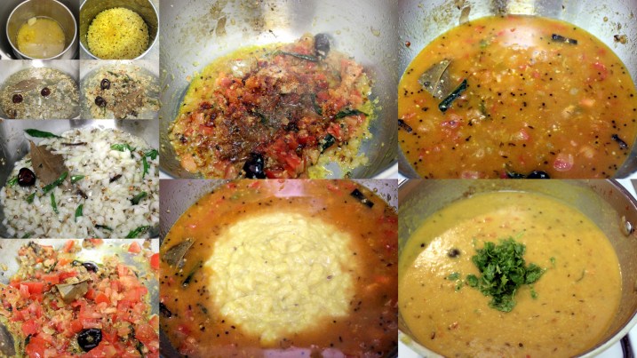 1. Boil the dals until fully done to mash-able consistency (about 4 to 5 whistles in a pressure cooker). You can use any kid here, I just prefer to use a combination of toor and moong dal to give it a light-weight feel and better consistency. You could even add in a handful of Channa dal if you like. Mash the dal and set aside.