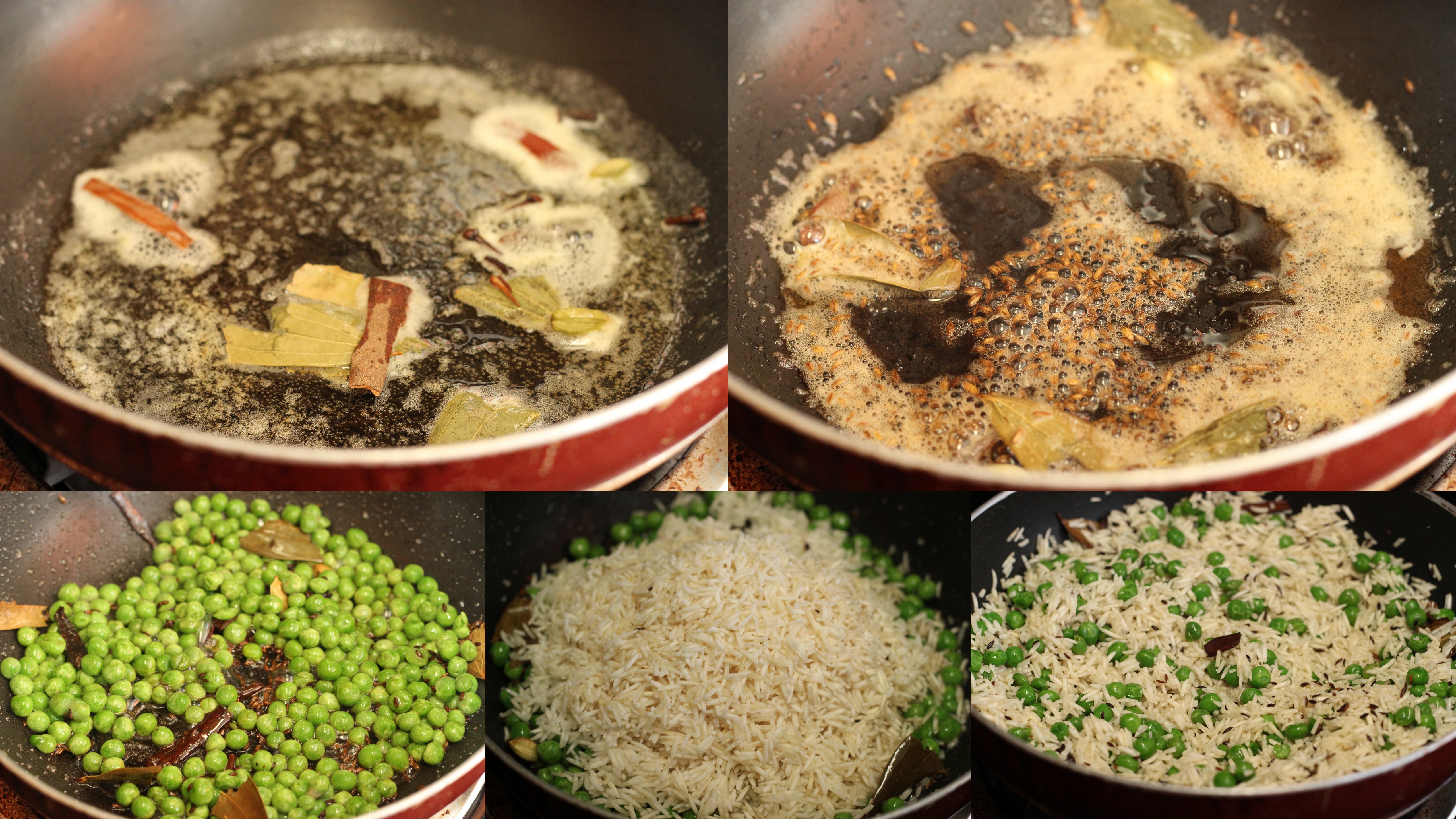 If you’re wondering why something as easy as jeera pulao warrants a blog post, it is more so you’re reminded of how it only takes a few extra minutes to make a regular meal feel like a whole special spread. This could be the one easy thing that you end up making for a special party, or even just to dress up that curry dinner you made during the week. But only you need to know that! For a long time, I just used to make the version without peas – so it used to be plain jeera rice or ghee rice. But with a picky toddler around, when you are looking for ways to add more nutrition and veggies to meals, this dish sure does help. More so, when you don’t really have to worry about peas being fresh in-season, and could grab some right out of the freezer without having to bother with the peeling (or the worms, gulp!!).